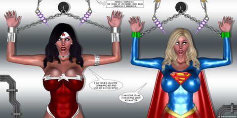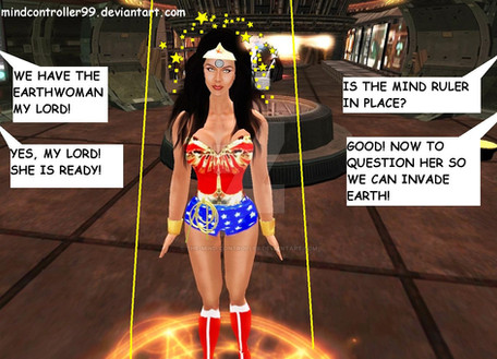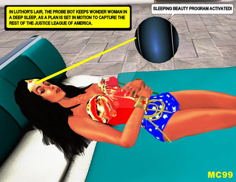 While placed in the nano chamber, Wonder Woman tries to resist her reprogramming by her robot captors.