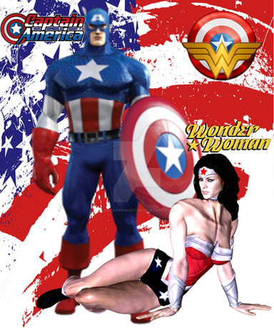 Some crossover art. I always thought Wonder Woman & Captain America should meet cause in a lot of ways they have a lot in common in their own way. Both fought in World War II then were brought back in present time. Both their costumes are symbols of America. It would be interesting to see them fight side by side.============