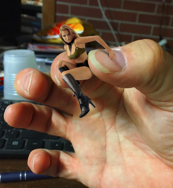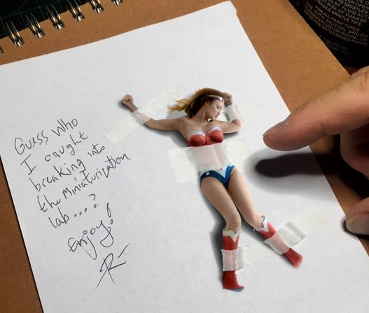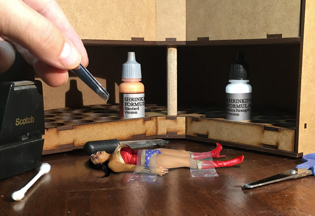 At one point I considered an ending where the villain shrank her again and left her a fraction of an inch tall. However, after I figured out my camera didn't take very good extreme close-up detail shots, I abandoned that idea.Related content