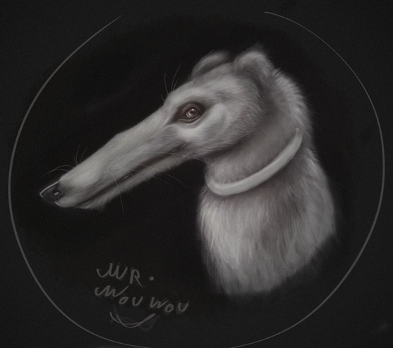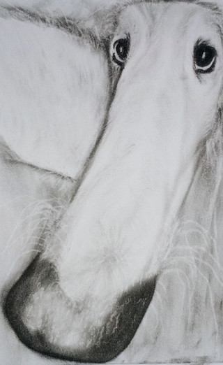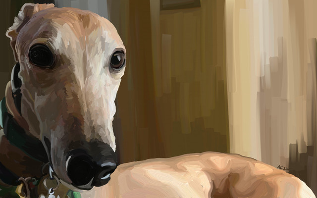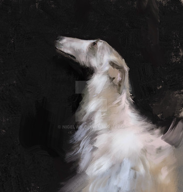 Lookat that muzzlesnout, I can't get over how delicate and delicious the texture of it looks. The legs are spindly and lovely. I think you've done such a great job capturing a sort of awkwardness that contrasts with the usual grace a Saluki is connoted with. (like that wibbly eye! So good!).