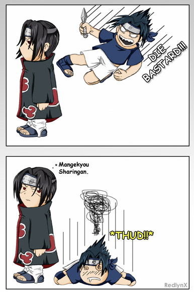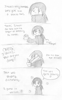 *dies laughing* I love how Itachi acts like it's some daily tribulation, his eyes poppong out, and how Kisame is like "WTC!?!?!I didn't know your eyes could do that...Must be a Uchiha thing" *continues eating dango*