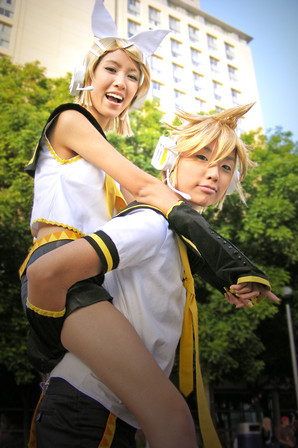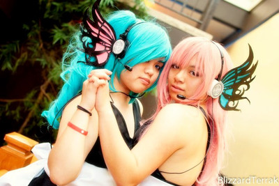 Costumes all made by ourselves, Miku/Luka headphones by , Rin/Len headphones by