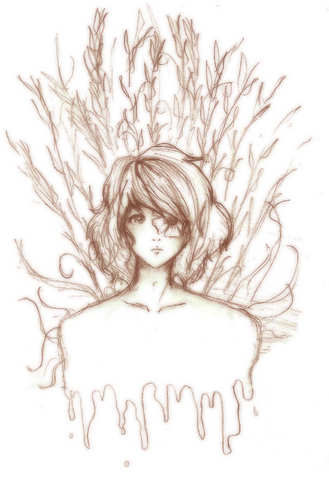 Hmm, just something quick I doodled up yesterday. I’ve always wanted to do a piece like this. I may revisit it and do a more detailed piece and change the petals into butterflies or something.