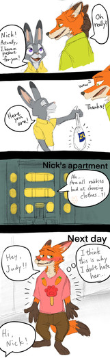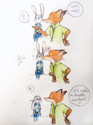 Got inspired from a dream I had last night to make this piece. In the dream Judy invited Nick to come visit her family back in the Boroughs. Nick got to meet her family and after an awkward start he was getting along with her parents and siblings. And it was then that Nick and Judy started seeing each other more than just friends and it escalated to this moment. Sadly, it was this point that I woke up. So I got up immediately and began drawing as I could not let this moment get out of my head.Part 2'