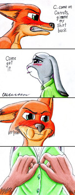 #blushing #bunny #disney #fox #lipbite #rabbit #shipping #shirt #suggestive #zootopia #nickwilde #the1king #judyhopps #judyxnick