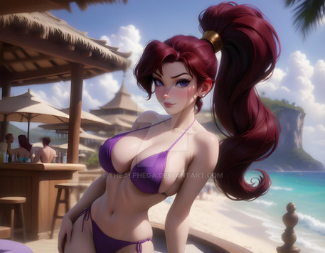 Description: "Step into the enchanting world of The Alphega Resort and Casino, where even Disney princesses take a break from their royal duties to enjoy a day off in the sun. This unique collection of 29 images reveals your favorite Disney princesses like you've never seen them before – as radiant staff members of the luxurious Alphega Resort, all dressed in stylish bikinis.