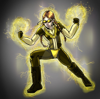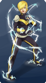 Whitney Flores can absorb massive amounts of electricity from her surroundings to power her body to incredible feats of strength. Unfortunately, while Whitney herself is rather intelligent and has big plans, all that electricity also scrambles her brain so when she first appeared as Electrode, those big plans quickly devolved into little more than a desire to punch things really hard.