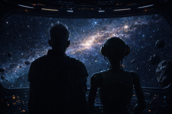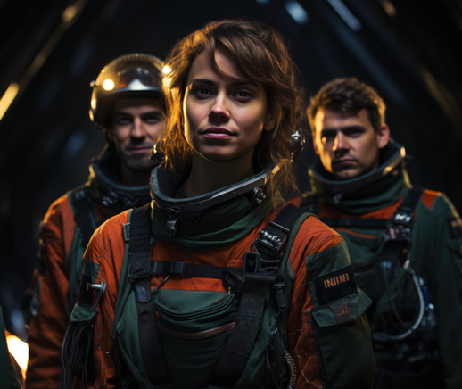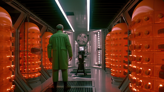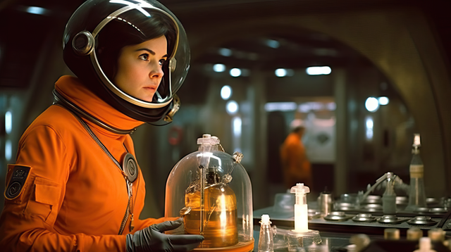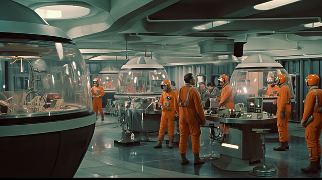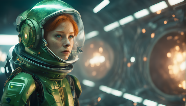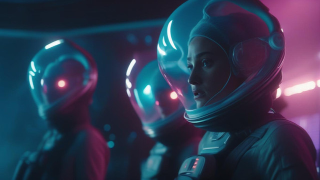 These are AI generated images from a scifi movie that doesn't exist. The esthetics, characters and details are all created following rigorous prompts depicting movie scenes and camera angles.Related content