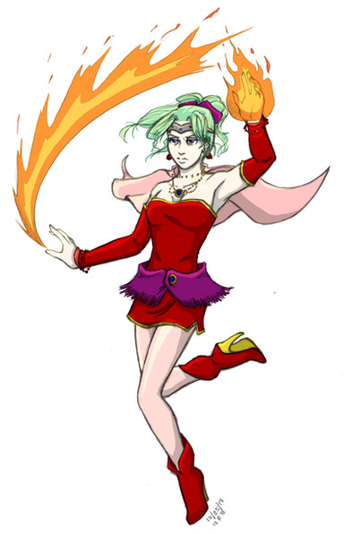 And lastly there's Terra, or rather my rendition of Terra's in-game portrait. Once again it's featured in 2:37 [link]I went with mint green hair rather than my usual darker color because I wanted to stay faithful to Terra's in-game color scheme. I do apologize for the background color; I tried...and I think I failed at color theory!