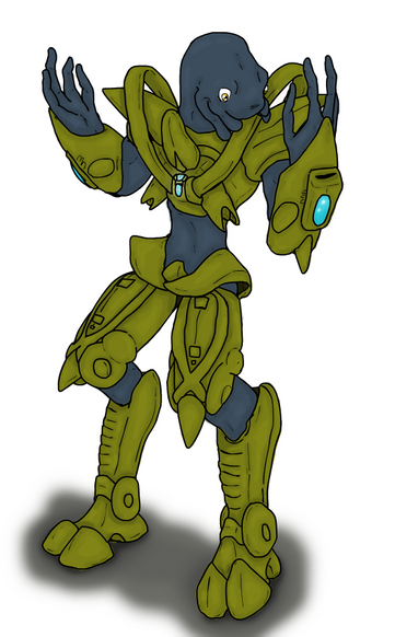 wow, cool alien. It reminds me of an Elite from Halo lol. I like the eyepatch and the torn mouth. Lots of injuries on this dude!