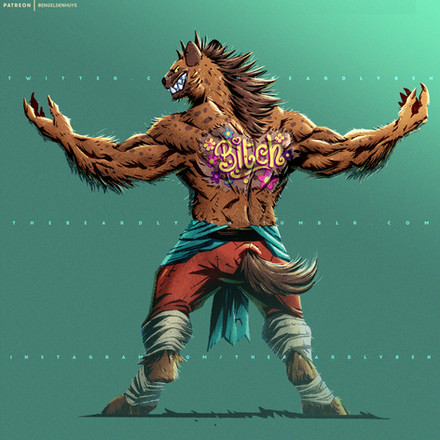 "I pictured myself, just an almost-normal long blonde/red haired dude minding my own business, and then when I find myself in a sticky situation almost spontaneously transform into a red bipedal wolf and wielding a rather huge sword..."