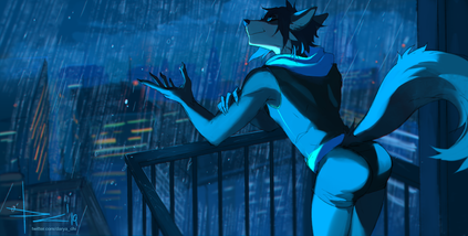 #annoyed #anthro #balcony #bat #butt #city #frown #fruitbat #glare #grumpy #male #nude #portrait #skinny #slim #solo #towel #wings #megabat