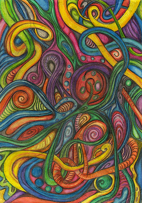 I was mesmerized while drawing them. [Those gummy worms were moving!!