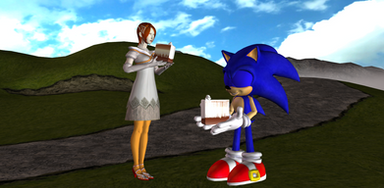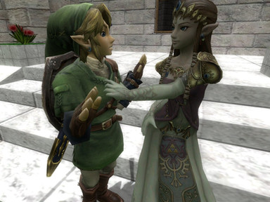 Link is trying to help Saria feel better after she was excluded from the 3DS Hyrule Warriors Legends, in addition to the first Hyrule Warriors for Wii U.: This is so unfair! That Lana girl is stealing my thunder! And my moves!