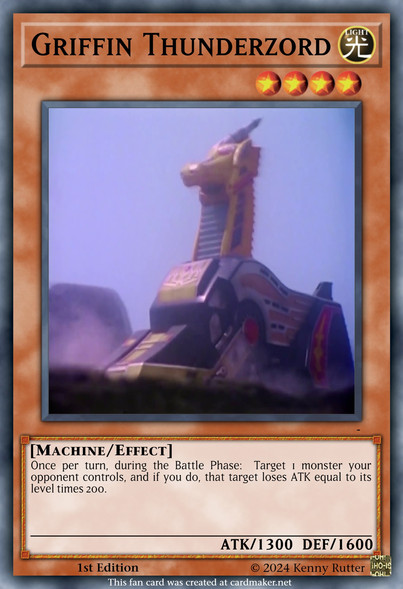 Week two of my series of cards based on Power Rangers. I'm doing this once a week until the premiere of Power Rangers Samurai. I made this using yugiohcardmaker.net.Related content
