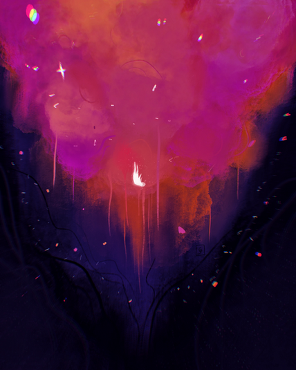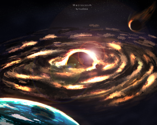 As for the piece, it looks great. Although I see it differently, i see what you were trying to make. From all my life, i’ve driven in snow during the winter, and one thing that always stuck in my mind was driving in the dark during a mild snowfall was how looking through the windshield at the snow coming at you felt just like traveling through the universe, seeing the stars as they passed by at lightspeed. As for the rest of the composition, the feeling of cold and danger is present in this picture through the high winds and blistering shards of snow wrapping through the piece, the figures in it seem familiar, but on closer inspection look foreign and alarming. Why is that vaguely human shape standing in the open during a blizzard? That red light, its not coming from the figure, it looks like some sort of structure in the distance, like a far away tower, and above it, the wind taking the light red flare almost looks like an eye, as if some sort of unimaginable entity is watching you, studying you, planning something, but what? Its like a bizarre combination of the celestial horrors of Mass Effect combining with the uncanny bodyhorror of John Carpenter’s The Thing.