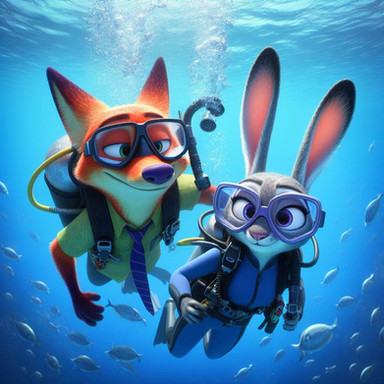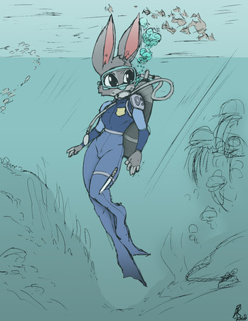 #bomb #bunny #carrots #diving #fox #hopps #judy #nick #rabbit #scuba #scubadiving #underwater #wilde #diffusing #nickwilde #judyhopps