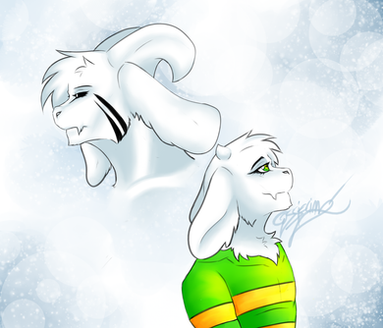 This turned out so good man! I love both sides of the picture. I like the way you decided to split the pic with that light ray in the middle (not to mention it makes the pic so bright) and also I like how you drew both Asriels. Not to mention I like how you did the background. Simple but it's just so good looking <3