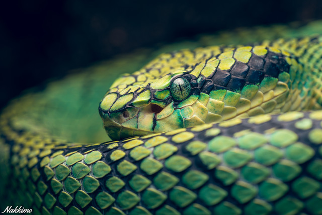 This time i used 3 separate layers for masking. The snake, the snakes eye, and the background.
