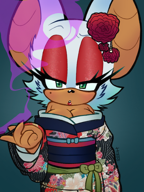 #fanart #geisha #kimono #painting #photoshop #watercolor #rouge_the_bat #rougethebat #sonic_the_hedgehog
