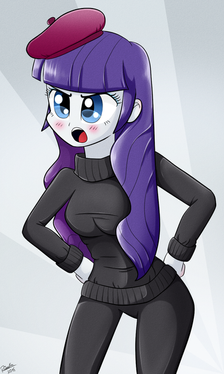 Nice, I always liked her "hipster" look. (Especially the hat, and hair style.) Very nice anthropomorphic design for her. I especially love her "slightly annoyed" facial expression. I also like how you gave her a more thicker figure. Very good coloring to.