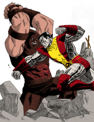 cool art,these two are my favorite characters on X men...But I dont think Colossus is strong enough to beat Juggernaut.I think only the Hulk can match his strength.