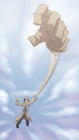Sweet! Looks like a teenaged Inspector Gadget going for a Copter ride for the first time. Great lineart and amazing coloring!