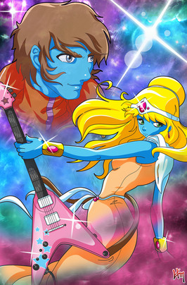Convention print, most likely, but above all simply a tribute to a dope musical duo, this particular album (Discovery) and a fantastic film! (Interstella 5555)