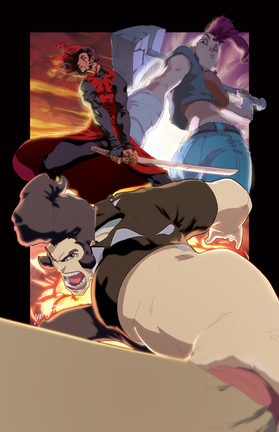 that thing down below with red hair sorta reminds of a really pipped up Guyver. Really diggin this pinup bro. your group shots are awesome as always