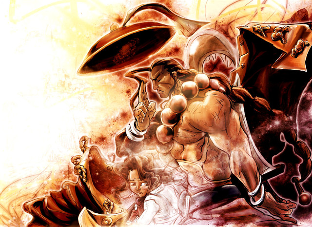 I am reminded of a robotic Star Platinum by the mechanical figure in the bottom right.