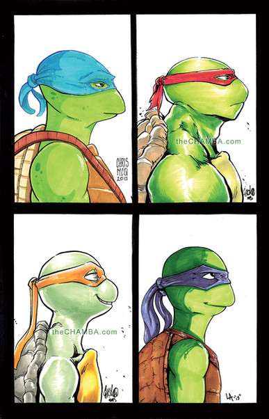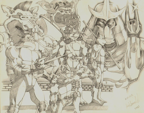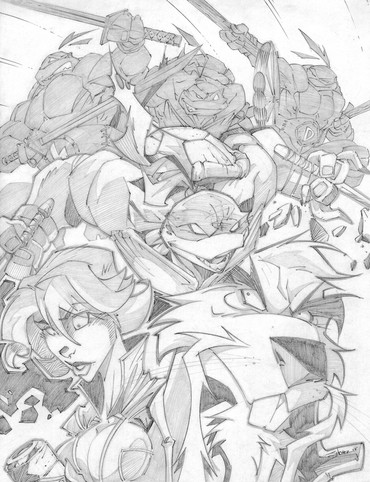 Its utterly amazing to see so many styles the tmnt crew is drawn in by so many different artisits, so to see them brough together into one drawing is indescribably cool C: