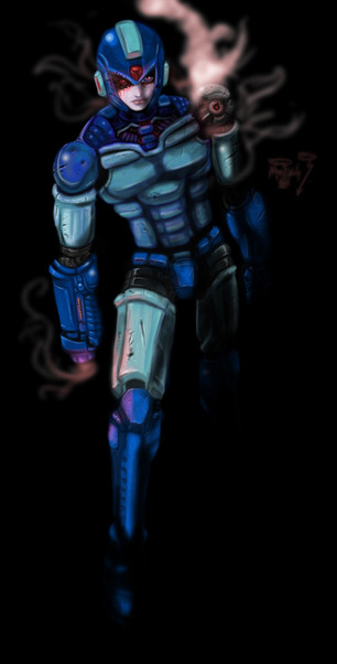 I really like this. I never actually thought about how much detail an artist could simply get out of just Megaman himself, but the amount of detail here is amazing. Of course everyone has their own opinion on what the guy should look like, but I find this really intricate in a way that gets the point across in a simple, yet effective manner.