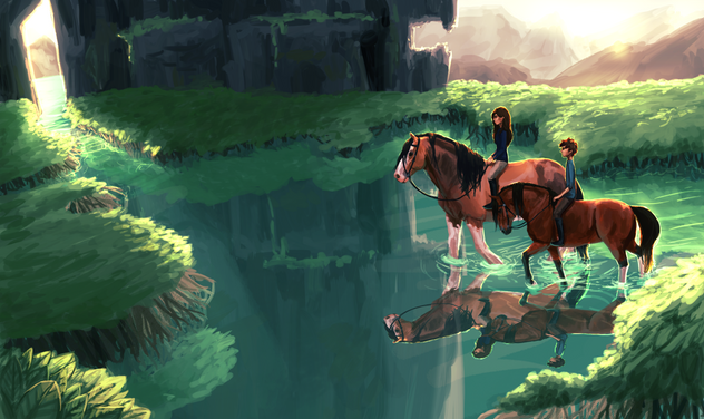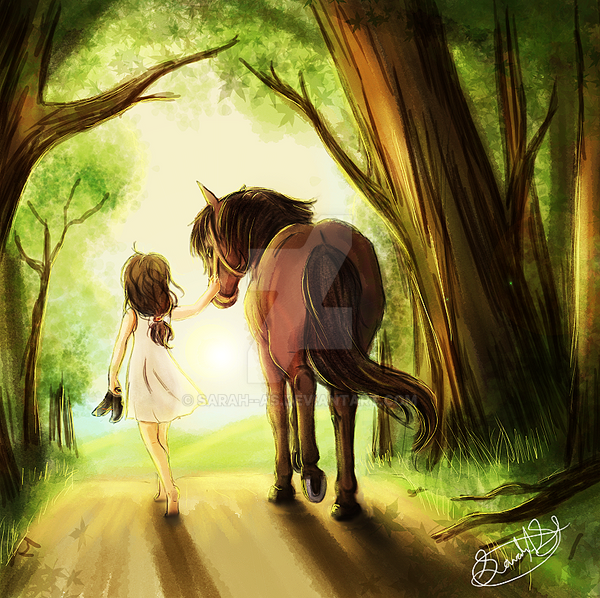 #clydesdale #fish #forest #girl #glow #horse #pond #trees #water