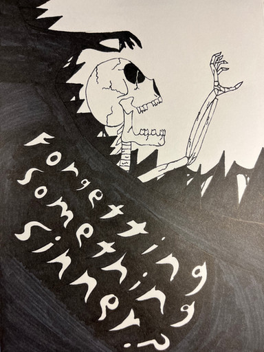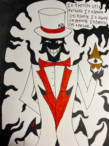 Upon my my restored consciousness I awoke to a world. One so foreign yet so familiar. The moon was shattered and bright as the sun, but it gave no light. Before me stood calamity, a lord of discord. A being so perfect in it’s power, but so primitive in form. It spoke no words, but the wandering forgotten, they spoke. Their words so loud, indecipherable and construed. They hide in the shadows, their transgressions against the fabric of reality contort them. Causing no pain, only the curse of forgotten identity. Their bodies were not strong enough to withstand the shattering of everything real. I return my attention to Calamity, they opened their cloak. Showing me a path to a church of fallen messiahs. I understand now that only a few that take the trip into chaos, may return to reality, barring the corrupted gifts of madness. I did not move from where I stood, locked in a battle between my mind and body. I held stiff until the fragile dimension began to shatter. I took a devil’s offer, but I still live to write this. After breaking into calamity’s reality the sky blackened when his cloak closed. Although, the ground stayed within my vision. I had no other options but to move toward the church. Trudging up the coarse path, the wandering forgotten began to take interest in my being. They closed in on me, screeching their incomprehensible language. In a panic, I sprinted to the doors of the church. In my panicked run the church doors opened wide for me. Bright was the light, it was no divine matter though. The noise from the church was unbearable, but by the time I noticed it’s further disruptive sound it was too late. A black arm dripping with some parasitic liquid grabbed me. It forced me inside with immense speed. By the time it let go of me, I had awoken. I felt pain like no other, a writhing pain in my eye and back. Looking up I saw a knife coated in blood and an eye laying on the stone table. Looking beyond that, the mural of calamity was bleeding, it’s eyes were red. When I noticed this, the pain ended. The vision from my left eye came back. I could see all that hid from the human eye. They worshiped me, I felt enlightened, so far above the unworthy. I am not sure why I even bother with writing this, I must join my peers within the church.-Prophet Jackson