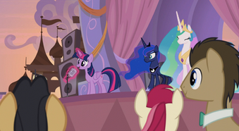Celestia: I made a fatal flaw. Twilight Sparkle, because of what this universe jumping dragon says, you are better off staying in Ponyville with your friends. You are much better to be united with your friends rather than in Canterlot.
