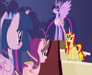 It could be the shame with twilight as a princess has no parents and no brother, now she's on her own becoming as a alicorn with the previous light what Luna turned back to nightmare moon just like the beginning. because for princess twilight was going to leave ponyville and move on to the crystal empire so the 5 Main ponies are stay behind in ponyville and spike takes place and stay put in the library tree house so they can meet her again, cause she is a true true friend for being happy and sad. for unicorn twilight is no more (because I want twilight to stay as a unicorn) so she an princess alicorn and she has no family.