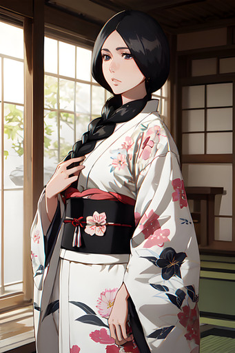 #ai #anime #bigbreasts #blackhairedgirl #bleach #braidedhair #fanart #japaneseclothes #maturewoman #milf #unohanaretsu #retsuunohana #kimonojapanese #unohanayachiru