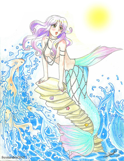 ooh~ I like how you did the water!! and her hair too, the detail is really pretty!!!