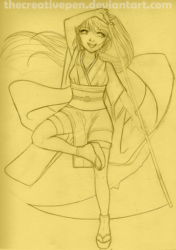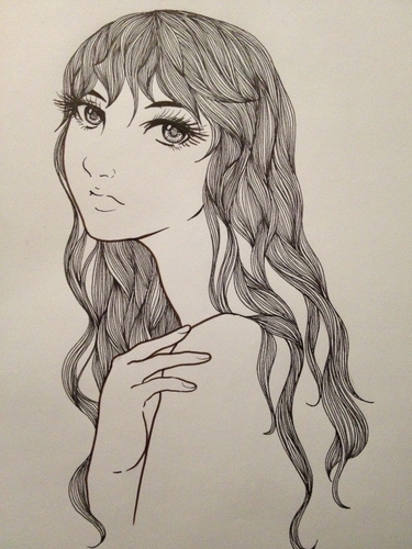 Anyways, I like this, though. It's calm and cute and pleasing to the eye. This is truly very artful and all. Her hair looks beautifully detailed and along with her eyes. Her face is so subtle - I like how her nose isn't drawn completely, I don't like it when people draw out noses so much, so the nose you drew her was perfect.