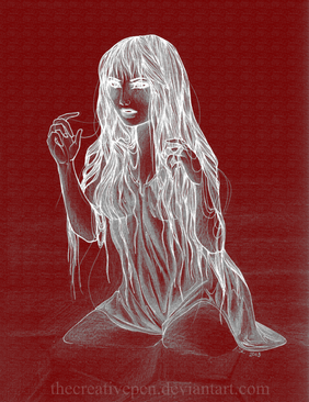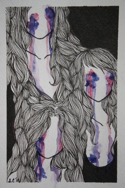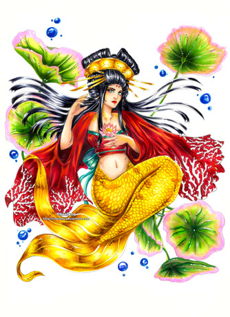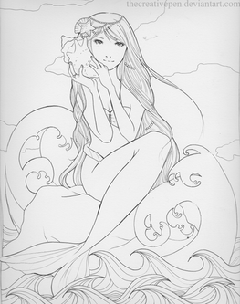 This is really pretty! Something like a oriental tattoo design. I think I get that impression from the waves and her fair skin&face. Her hair is very nice as well...long beachy waves! I think it would be even nicer to look at it if the canvas was slightly bigger and I could see the frame that the waves makes around her. Cutting off some parts of the image can have it's benefit to create interest and mystery as to what is off the picture, but in this case I think having the entire subject within the picture would be better. Other than that this is a very beautiful work. ^_^