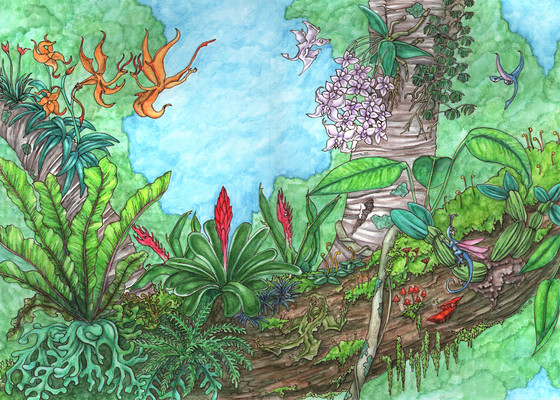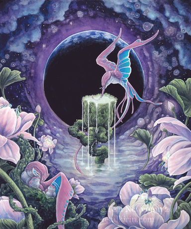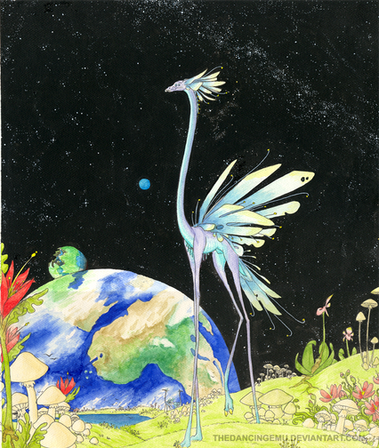 This is gorgeous. I love the colors and all the little details in the flora and fauna. I would love to see more paintings of this world. C: