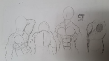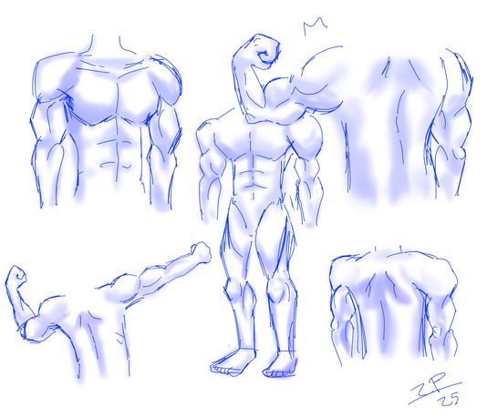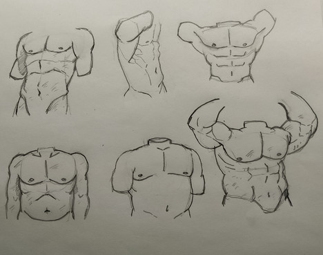 I wanna draw muscular characters so time for practice and referencesThe black box is to cover a doodle I didn't like