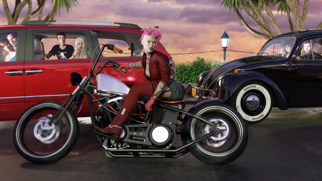#bikerchick #femalecharacter #motionblur #roadway #tattooedgirl #urban #tattooedwoman #daz3dstudio #motorcyclegirl #selfiegirl #dazstudioiray