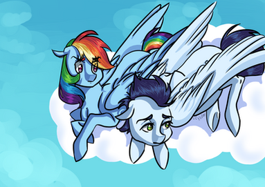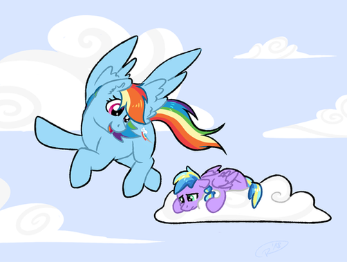 Rainbow: All right, so I'll tell you what kiddo; you beat your mom to that cloud over there, and you can have an extra piece of pie for dessert tonight. Sound like a deal?