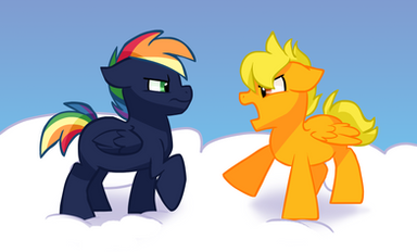 When he was still a colt, Kaboom pretended to be into flying. He didn't want to make Rainbow look "uncool" for not having a sporty kid. But shortly after this he told her the truth, and their relationship became more distant.