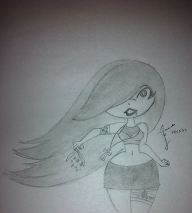 I drew my bf 's oc Spade for him since he was kind enough to draw my oc Nani and made her look super adorable. I am not as awesome as he cuz he can work the digital art like whoa and I'm just a sloppy sketch kinda gal but hey, it works. I think I did an okay job except I kinda effed up her hands but let me just say, if you are trying to free hand this gal, her head is a pain to get right XD Love you baby, hope you like this! It's not glorious but it's made with love! /cheezy I'm out! XDAlso, Spade belongs to Narffy, not me....OR YOU EITHER!