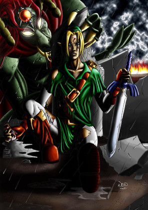 I like how you didn't use any colour on Link. It really makes him stand out against that gorgeous background, and accentuates the blood.