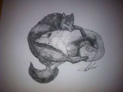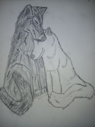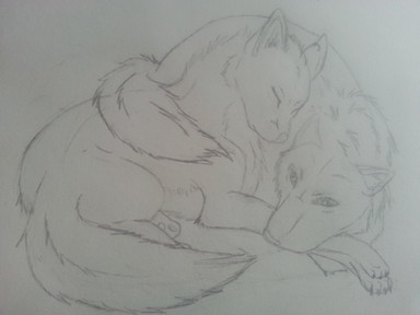Two wolves i draw hugging, Slightly messed up their heads, hope you cant tell!Related content