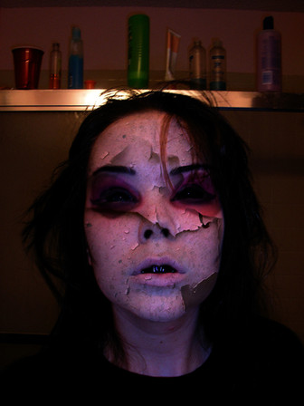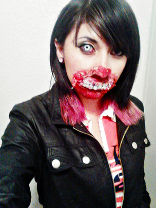 Woah! A mi me molaría hacer uno de esos cursillos en los que te explican como funciona el foam latex que como es una cosa que no se puede hacer en casa... Pero bueno, el maquillaje de esta vez lo hicimos con una mezcla nueva de gelatina: usamos una base de gelatina, sorbitol y glicerina y cuando estaba preparada se fundía de nuevo y se le añadia zumo de limón y bicarbonato, entonces era como si fuera "espumada" o algo así, la verdad que la textura quedó chulísima ^^