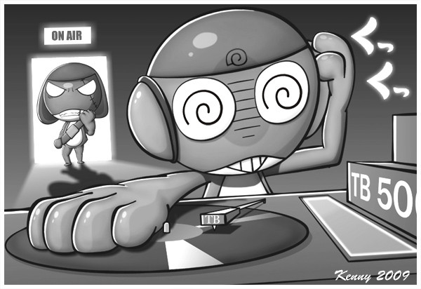 I'd pick kururu as my DJ any day any time lol He looks really demonic here too. I love it!! I love him!!! lol : (my strange nosebleed face) lol
